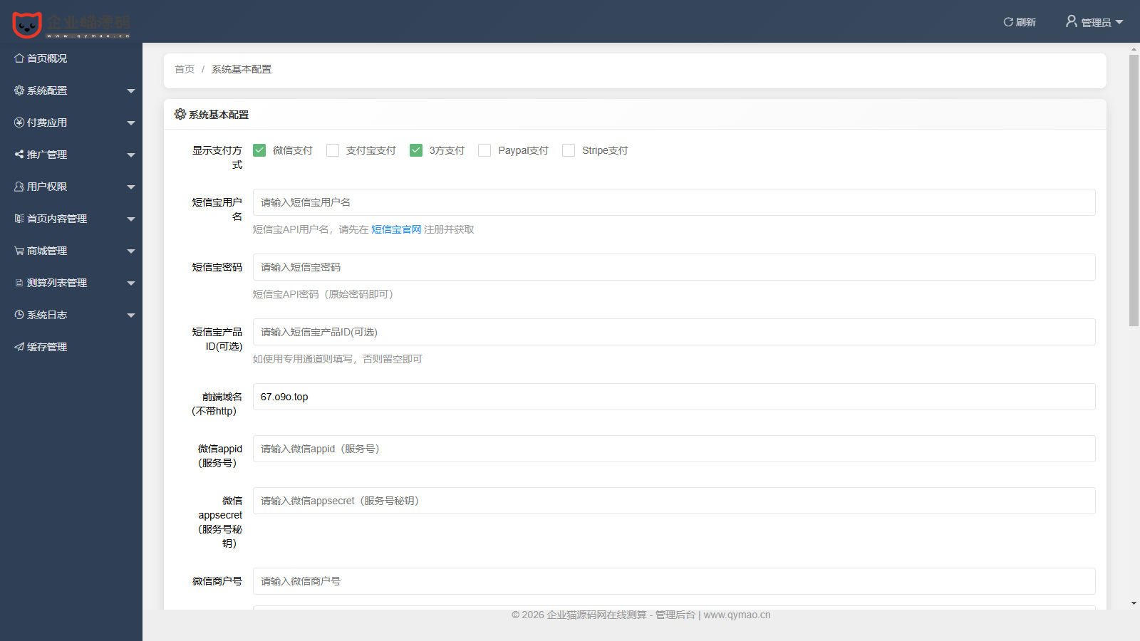 5.多半修复,这套源码使用电脑微信支付正常付款,可正常回调,但如果是使用手机的话,就会报404错误,匠心重写了下相关文件,但由于企业猫没有微信H5支付,未能测试是否重写成功,大概率成功,因为提示“商户号该产品权限未开通,请前往商户平台>产品中心检查后重试。”已经可以测出来我没有H5支付权限了。