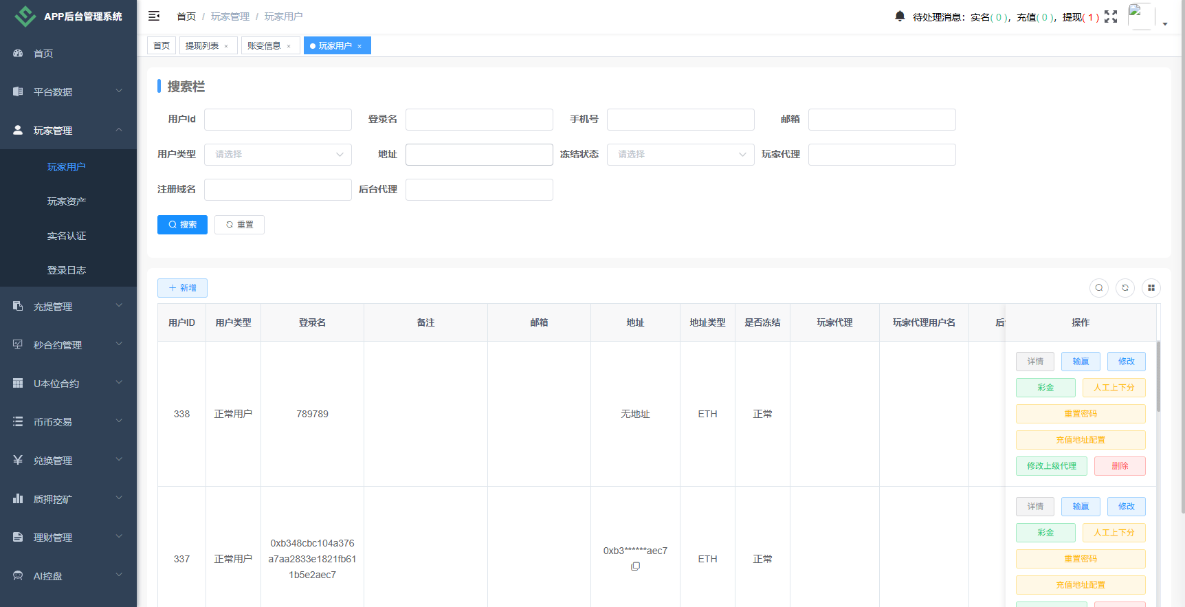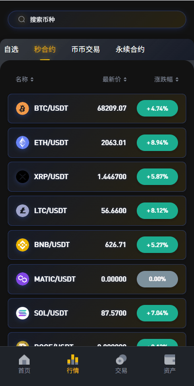 币币、合约、秒合约、质押、助力贷、理财、行情控制等功能