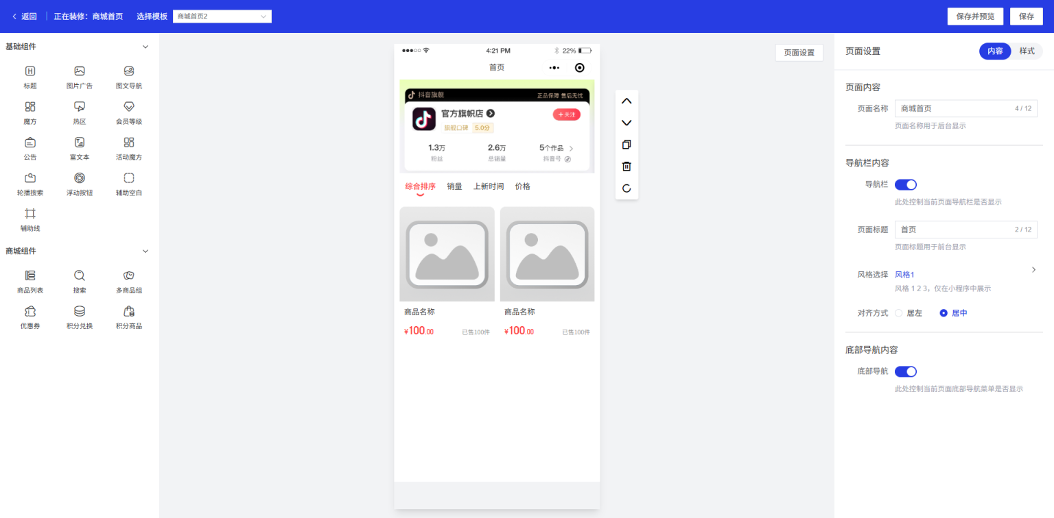 带有强大的装修管理功能模块,可对用户端界面进行高度DIY